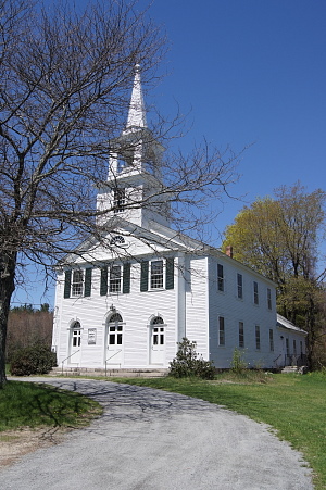 field, and the Baptist Church with its traditional spire is located beyond the field on the left. It is very visible from the road as you approach it from this direction. Turn left into the parking area.