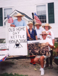 Marching in the Fourth of July Parade, showing the old kettle in which Old Home day chowder was made from 1906
