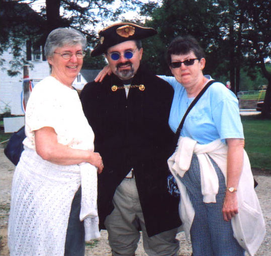 church, and is welcomed by Lorraine Laprise and Judy Hall. Photograph by Marilyn Brownell.