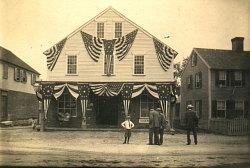 churchyard. Stores up and down Main Street were decorated with flags and bunting. Flags flew from private dwellings. Businesses, including the mill, closed at noon so their employees could enjoy the